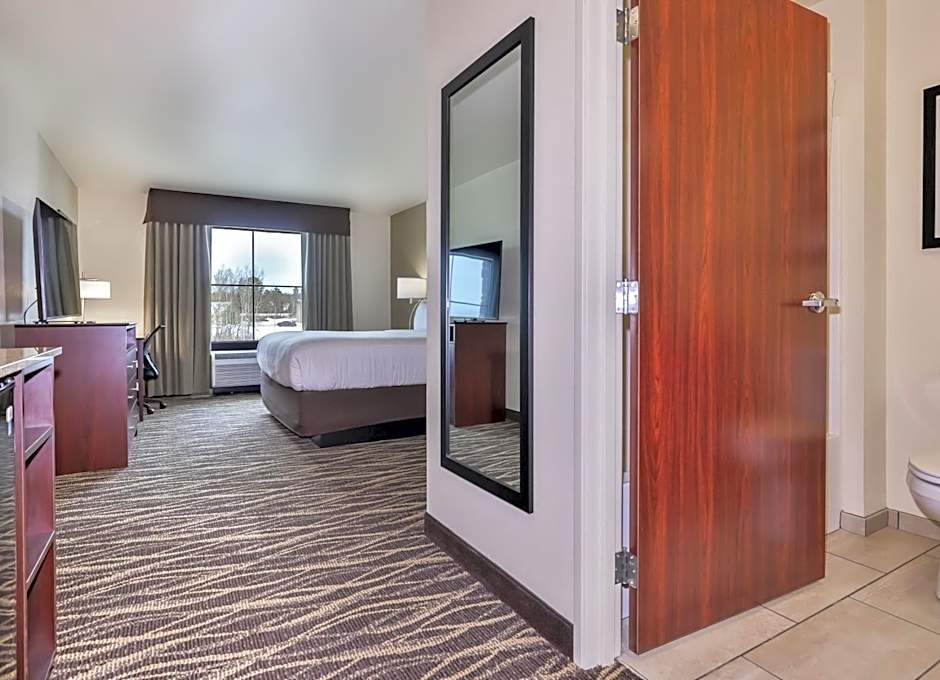 At the DoubleTree by Hilton Jefferson City, there are several types of rooms available. These include King Suites with Spa Bath, Double Rooms, King Rooms with Roll-In Shower, and Non-Smoking Double and King Deluxe Rooms. All rooms have a size of 495 sqft and do not allow smoking. The occupancy ranges from 2 adults and 1 child to 4 adults and 3 children, depending on the room type. The beds provided include sofa beds, double beds, and king-size beds.