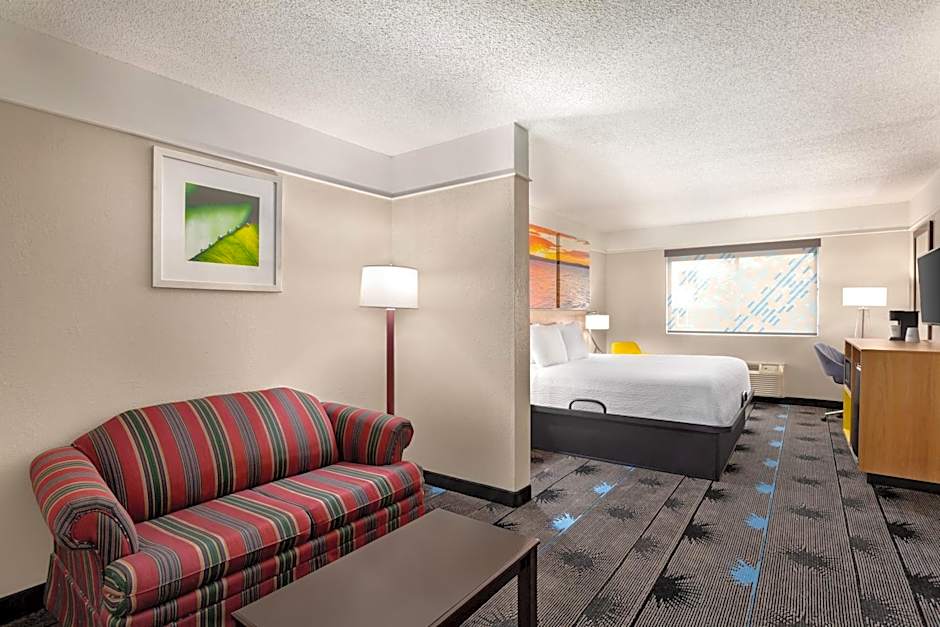Days Inn by Wyndham Kansas City International Airport offers a variety of rooms including Queen Room with Two Queen Beds, King Studio Suite, Suite with Two Queen Beds, King Room with Disability Access, and King Room. These rooms do not allow smoking and range in size from 291 to 538 sqft. They can accommodate between 3 to 5 adults and 1 to 2 children, with bed options such as Queen size, King size, and Sofa Bed.