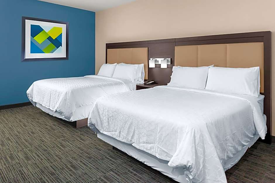 The Holiday Inn Express in Kansas City Downtown offers a variety of rooms including those with 1 King Bed, 2 Queen Beds, and Queen Room with Two Queen Beds. All rooms are non-smoking, accommodate 2 adults and 1 child, and have beds ranging from King to Queen size. The room sizes are 301 sqft and there are options available for guests with accessibility needs like hearing or mobility access.