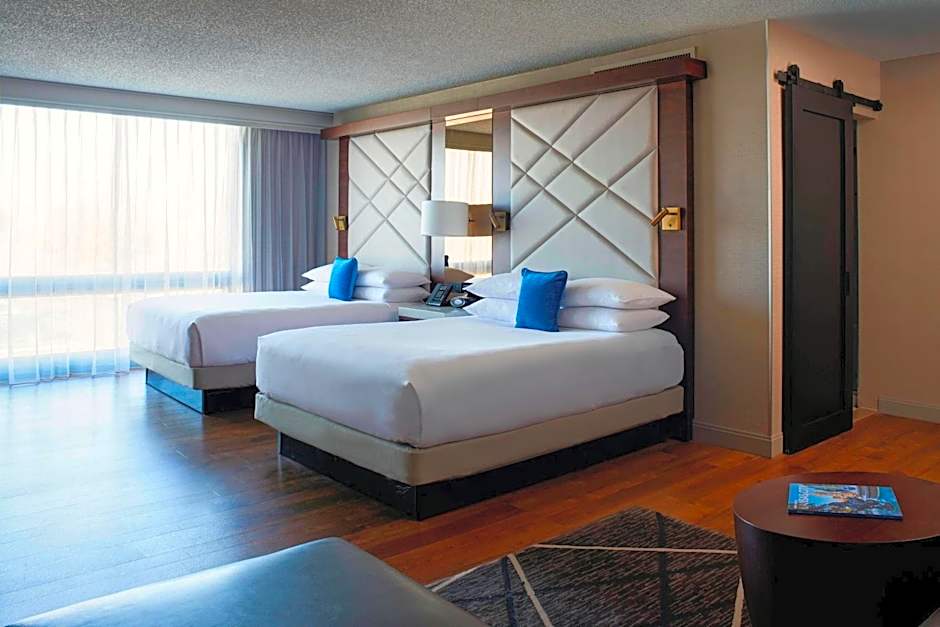 The Kansas City Airport Marriott offers a variety of room options including Queen Rooms with adapted tubs or roll-in showers for mobility accessibility. There are also Guest Rooms with one or two Queen beds, Double beds, or a King bed. The rooms vary in size from 258 to 280 square feet and can accommodate 2 adults and 1 child to 4 adults and 3 children. Smoking is not allowed in any of the rooms.