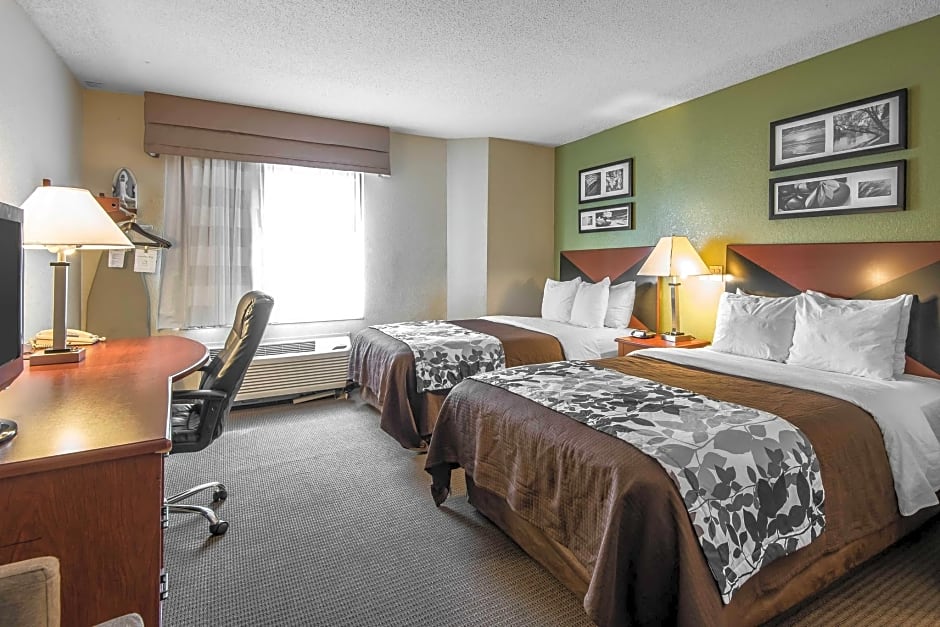 At Sleep Inn Kansas City International Airport, guests have a choice between a Queen Room and a Double Room with Two Double Beds. Both rooms are non-smoking and have a room size of 323 sqft. The Queen Room accommodates 2 adults and 1 child, while the Double Room with Two Double Beds accommodates 4 adults and 3 children. The Queen Room has 1 Queen-size bed, while the Double Room has 2 Double beds.