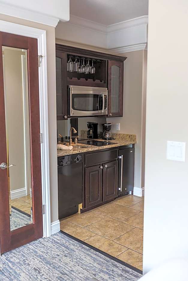 Offering a private balcony with a view of the lake, this suite includes a separate living area with a fireplace and a 42-inch flat-screen TV. A kitchenette and an extra large bathroom with dual headed shower are also provided.