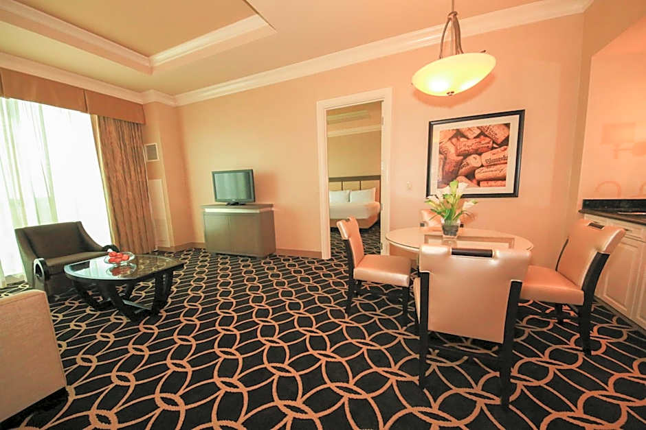 For dining options, the hotel offers a range of restaurants. Guests can enjoy a fine dining experience at Final Cut Steakhouse or savor American cuisine at 99 Hops House, Celebrity Grill, and Hollywood & Grind. Italian cuisine is available at Charlie Gitto's, while Asian dishes can be enjoyed at Phat Tai. Families can also dine at the family-friendly Eat Up! Buffet.