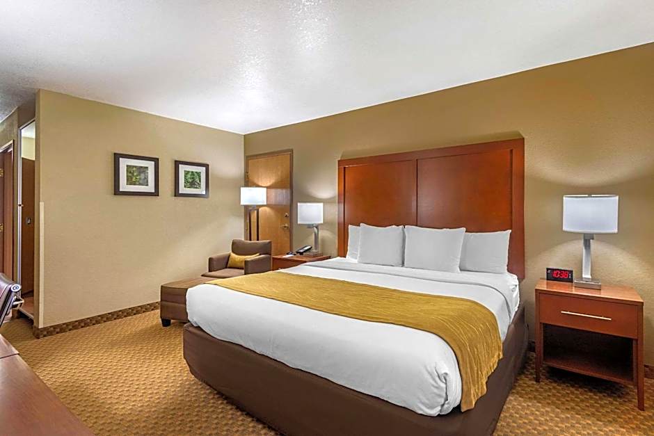 The Comfort Inn & Suites Springfield I-44 offers a variety of room types, including King Rooms, Queen Rooms with Two Queen Beds, and Executive King Suites. All rooms are non-smoking and have a room size of 312 sqft. The occupancy varies, accommodating between 2 and 5 adults, and the bed sizes range from King to Queen size, with some rooms also featuring a sofa bed.
