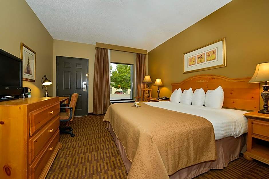 At Quality Inn South Springfield, there are King Rooms (non-smoking) and Queen Rooms with Two Queen Beds (non-smoking and smoking options available). The King Rooms have a bed size of 1 x King and accommodate 2 adults and 1 child, while the Queen Rooms have a bed size of 2 x Queen and accommodate 4 adults and 3 children. The rooms are approximately 280 sqft in size. Smoking is not allowed in the non-smoking rooms.