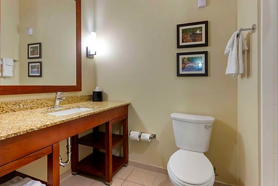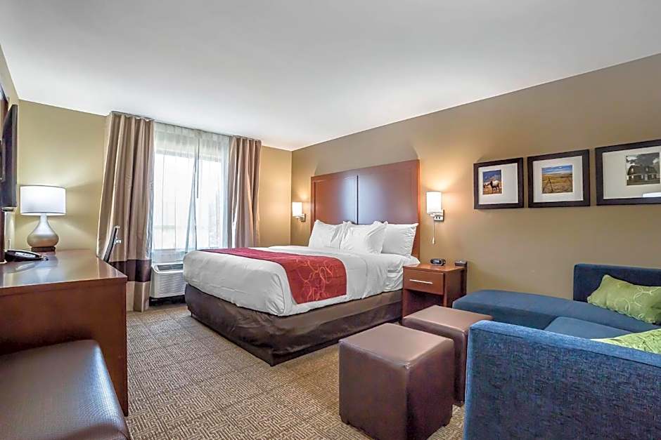 The Comfort Suites Billings offers a variety of room types including suites and family rooms. Smoking is not allowed in any of the rooms. The rooms accommodate between 2 and 6 adults, with bed sizes ranging from queen to king size. Some rooms are accessible and feature accessible tubs or roll-in showers.