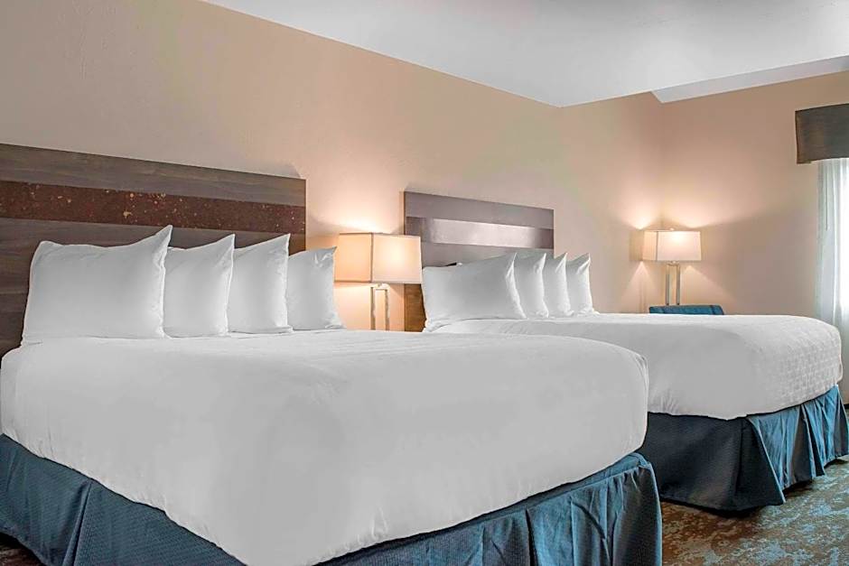 At the Copper King Convention Center, Ascend Hotel Collection, there are rooms available for families. The Queen Room with Two Queen Beds and Shower is non-smoking and pet-friendly, accommodating 4 adults and 3 children. There is also the option of the Superior Family Suite, a non-smoking room that accommodates the same number of guests. This suite is larger in size and features a King size bed and a Queen size bed.