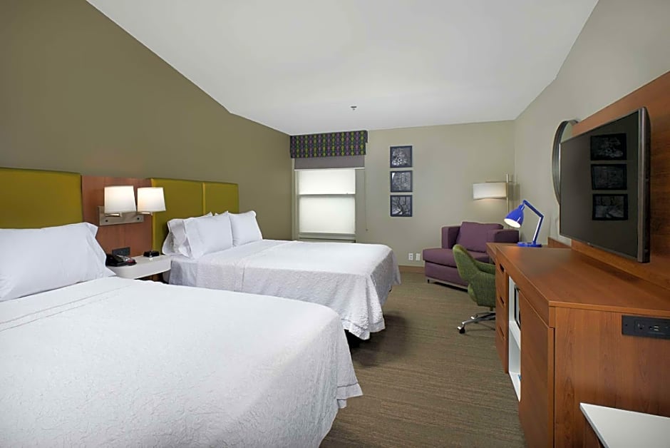 32-inch LCD TV, free WiFi, work desk, refrigerator, microwave, coffeemaker Enjoy your stay in this spacious non-smoking room which features two queen-sized clean and fresh Hampton beds® with cozy lumbar pillows. This room contains elegant Bridges by Thomasville furniture. Relax in front of the 32-inch LCD TV or work at the desk and stay connected with free WiFi access. The stylish bathroom with plush towels provides a shower with WaterPik® showerhead and curved shower rod for extra space and light. Other convenient amenities to make you feel at home include a refrigerator, microwave and a coffee/tea maker.