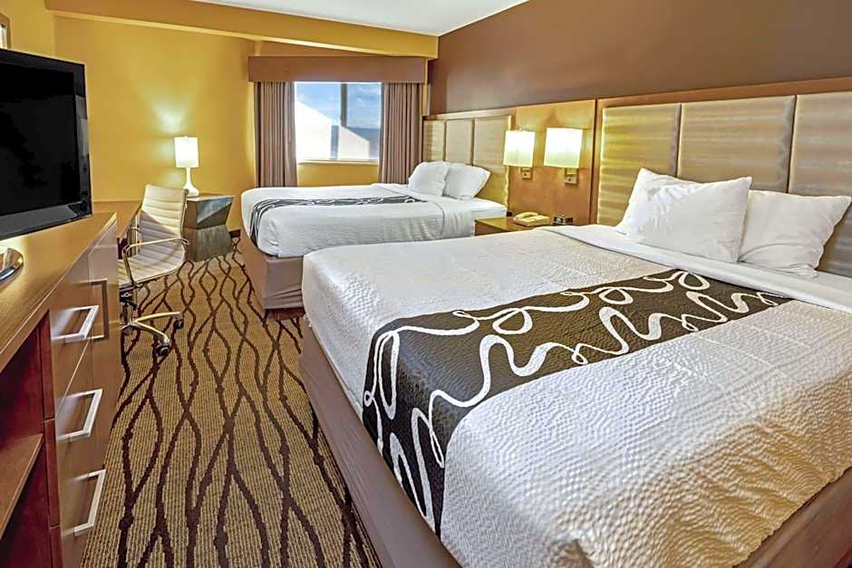 La Quinta by Wyndham Butte offers a variety of room types including Deluxe Queen Rooms with Two Queen Beds, Deluxe King Rooms, King Suites with Mountain View, Deluxe King Suites with City/Mountain View, and Queen Rooms with View and Mobility/Hearing Impaired Access. All rooms are non-smoking and have different occupancy limits. Bed sizes include queen, king, and sofa bed options, depending on the room type.