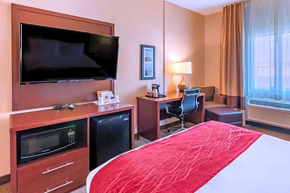 Comfort Inn Great Falls offers a variety of room types including King Suites, Queen Rooms with Two Queen Beds, and King Rooms. All rooms are non-smoking and have different bed sizes to accommodate various occupancy needs. The King Suite can accommodate up to 4 adults and 3 children, while both the Queen Room and King Room can accommodate 4 adults and 3 children as well.