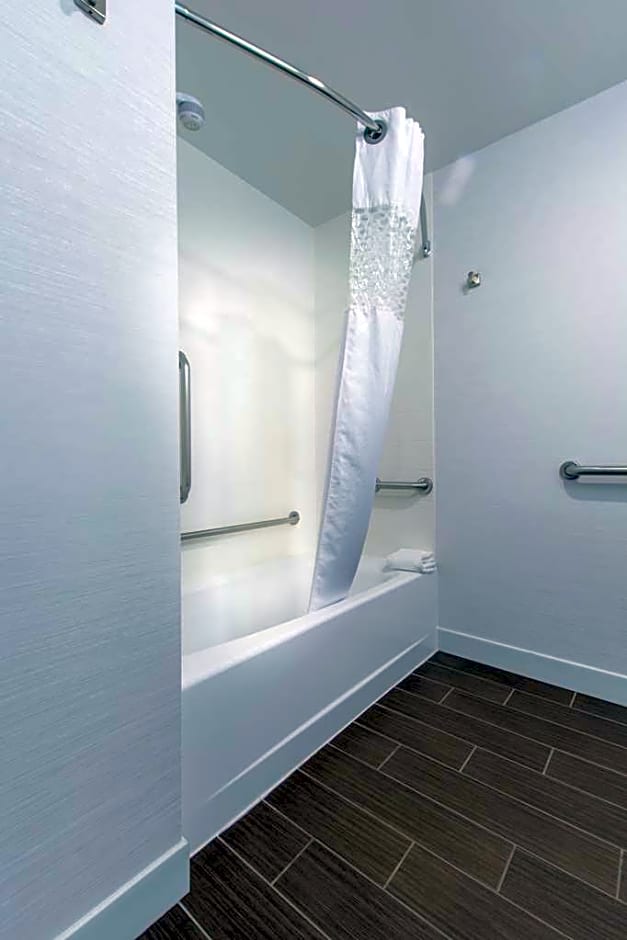 This mobility and hearing accessible, non-smoking room features one king-sized bed and an accessible bathtub. The room also has a visual alarm and notification devices for the doorbell or door knock and incoming phone calls. The room features a comfortable sofa bed, microwave, refrigerator, a 32-inch HDTV, and easy to operate alarm clock/radio. The free WiFi will help you stay connected while on the road. If you prefer not to work at the desk, you can use the convenient lapdesk instead. You'll also enjoy the convenience of having a coffeemaker with tea service and iron/ironing board in your room. Any corresponding photo may not reflect the specific accessible room type or room feature.
