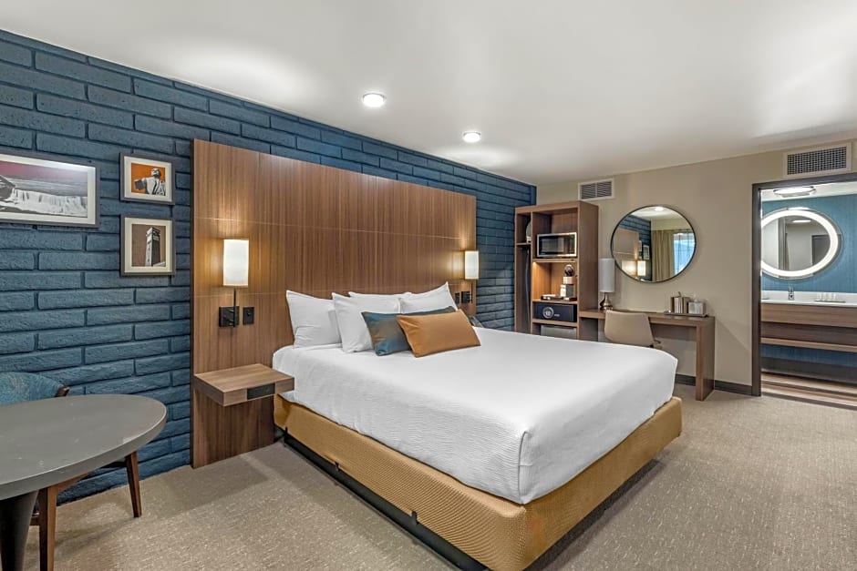The Gibson Hotel Great Falls offers King Rooms with a King size bed, Queen Rooms with a Queen size bed, and King Suites. All rooms are non-smoking and can accommodate either 2 or 3 adults. The King Rooms have a room size of 301 sqft while the bed sizes vary based on the room type.