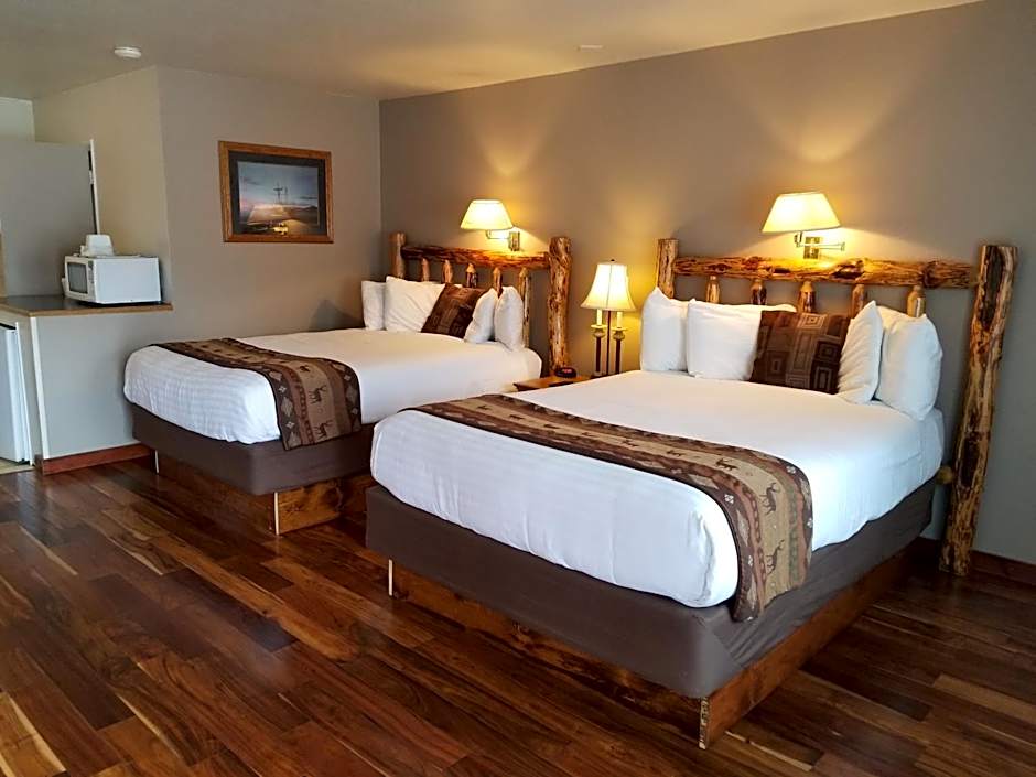This room features 2 queen size beds and mountain views. Soundproofing, private entrance and microwave is included.