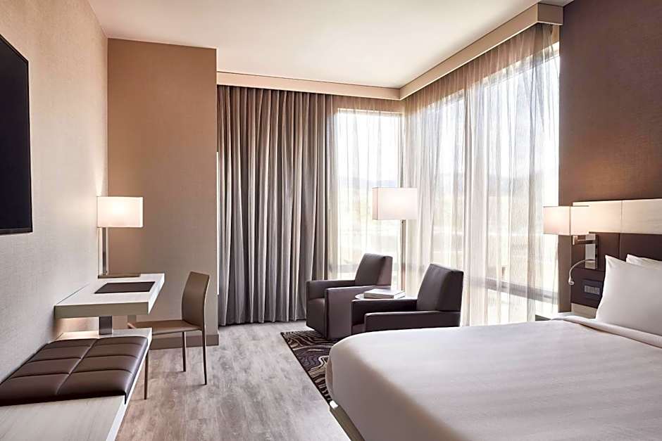 Our room was beautiful, but seemed a bit cramped. The affect of the size was minimized by the great layout and good use of space. LOVED the long built in bench against the wall. Perfect for luggage a shopping bags. When we used the slider to close the bathroom door, it had debris and dirt on the floor that had not been thoroughly cleaned. Other than this is was really a great stay. Staff was amazing, friendly and helpful.