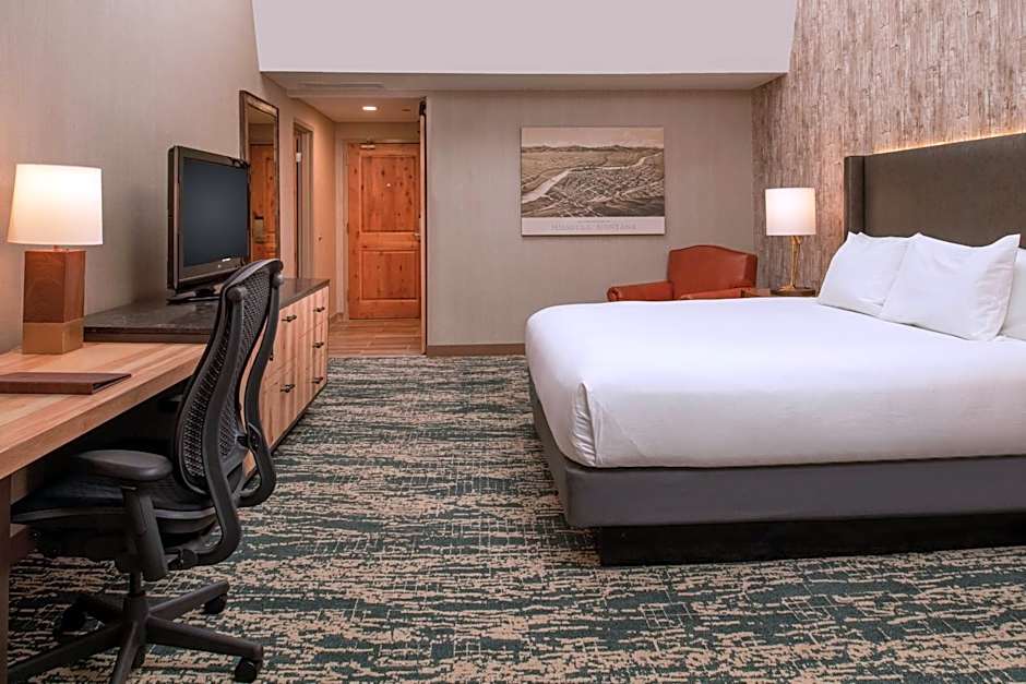At the DoubleTree by Hilton Missoula Edgewater, there are several types of rooms available. Room options include Deluxe Queen Room with Two Queen Beds, Junior Suite with River View, Standard Queen Room with Two Queen Beds, Queen Room with Two Queen Beds, Queen Room with Two Queen Beds - Hearing Accessible/Non-Smoking, Double Queen Room with Two Queen Beds, Double Queen Room with Two Queen Beds - Non-Smoking, King Room, King Room with Accessible Roll in Shower, King Room with River View, Junior Suite, Standard King Room, and King Room with Dining Deck View. All rooms are non-smoking and have a size of 301 sqft. Occupancy ranges from 3 adults and 2 children to 4 adults and 4 children, depending on the room type. Bed sizes vary between Queen and King, with some rooms also including a Sofa Bed.
