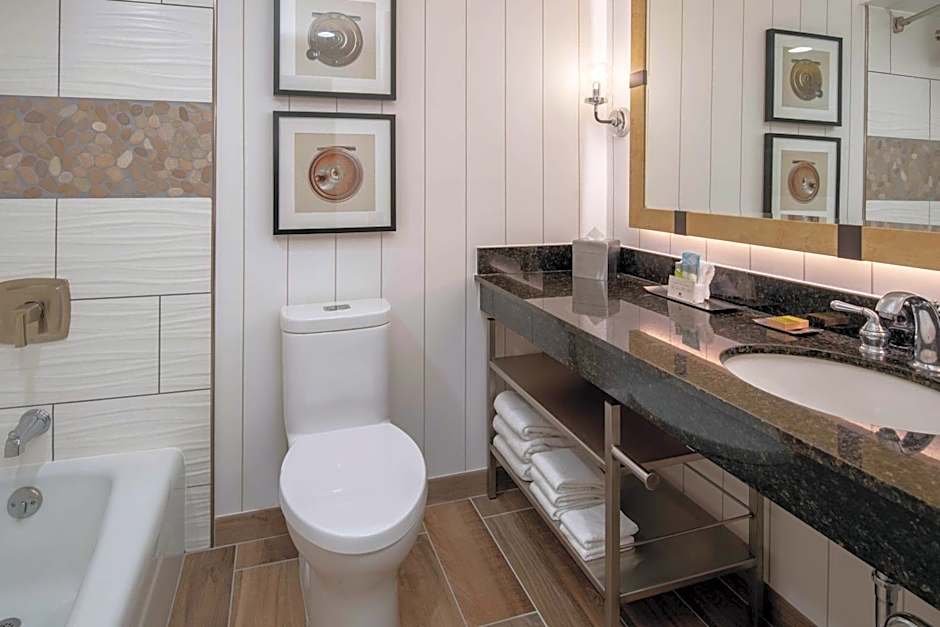 Amenities include a restaurant and bar, a free outdoor swimming pool, complimentary wifi, and a free airport shuttle plus free shuttle service. A fitness center and business center are available at no extra charge, along with a 24-hour front desk, room service, and non-smoking rooms. Parking is available on site for an extra charge, and pet-friendly options are also offered for an extra charge. The property is wheelchair accessible and features live music performances (free), beach chairs/loungers, elevator access, a balcony, a bathtub, and free toiletries.