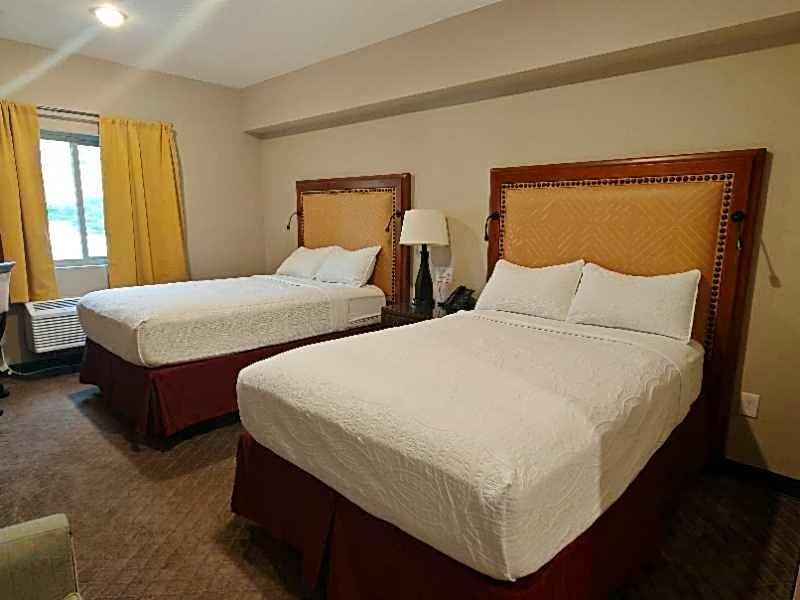 At the Wagon Wheel Hotel, there are Deluxe Double Rooms with two double beds that can accommodate up to 4 adults and 2 children. Deluxe King Rooms are also available with a single king-size bed, accommodating 2 adults. There is also a Deluxe Triple Room with a king-size bed, suitable for 2 adults. All rooms have an area of 366 sqft and smoking is not allowed.