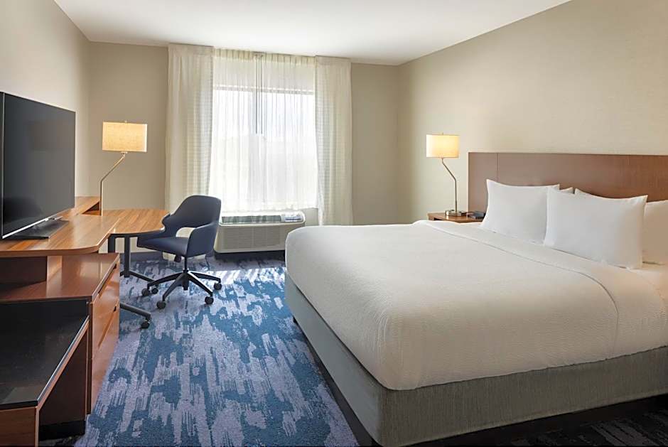 The Fairfield Inn & Suites by Marriott Lincoln Southeast offers a variety of room types, including King Studios, King Rooms, and Queen Rooms with Two Queen Beds. These rooms can accommodate between 3 and 4 adults, with additional space for 2 to 3 children. All rooms are non-smoking and feature either a king-size bed or two queen-size beds. Room sizes range from 291 to 388 sqft.
