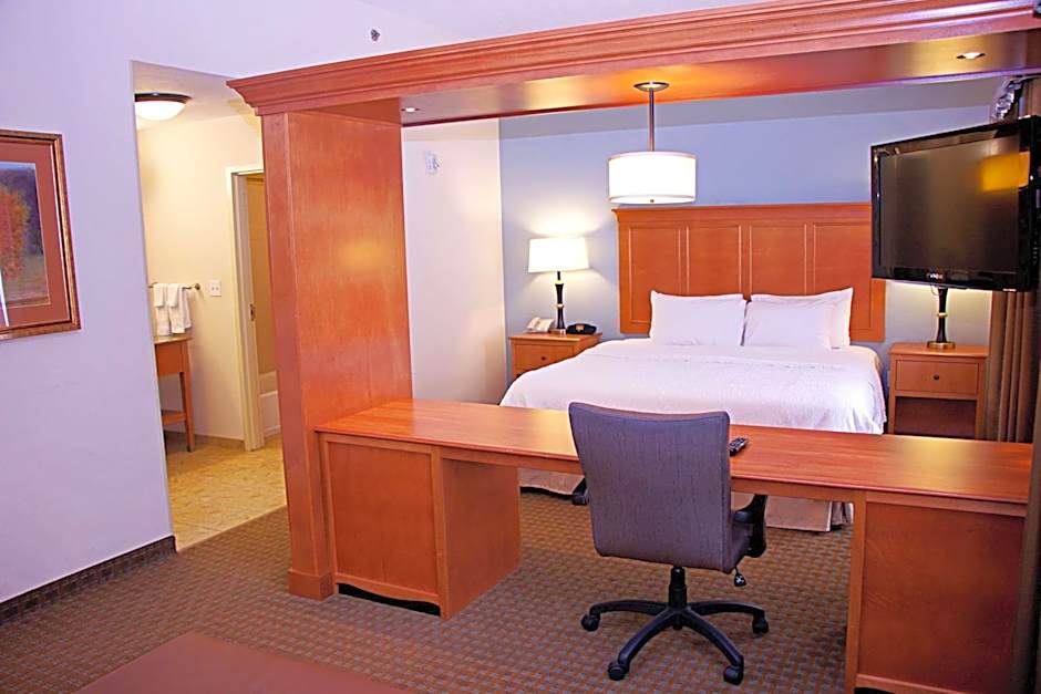 Easy chair with ottoman, 32-inch HDTV, work space, coffeemaker, free WiFi Unwind in this guest room which offers one king-sized clean and fresh Hampton bed®, a comfortable seating area and a 32-inch HDTV. Work in comfort at the large desk and stay connected with free WiFi access. Refresh in the bathroom, complete with a large dressing area, WaterPik showerhead and fluffy towels. The curved shower rod provides extra space and light when showering. Additional amenities in this room include a handy coffee/tea maker.