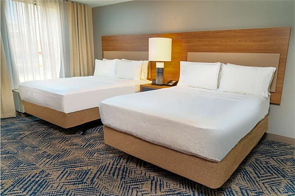 With a range of room types available, the Candlewood Suites - Las Vegas - E Tropicana has the perfect accommodation to suit your needs. Whether you're traveling solo, with a partner, or with your family, there is a room type that accommodates varying group sizes. From spacious suites with queen and king beds to mobility accessible and hearing accessible rooms, the hotel ensures that every guest can enjoy a comfortable stay with plenty of space to relax and unwind.