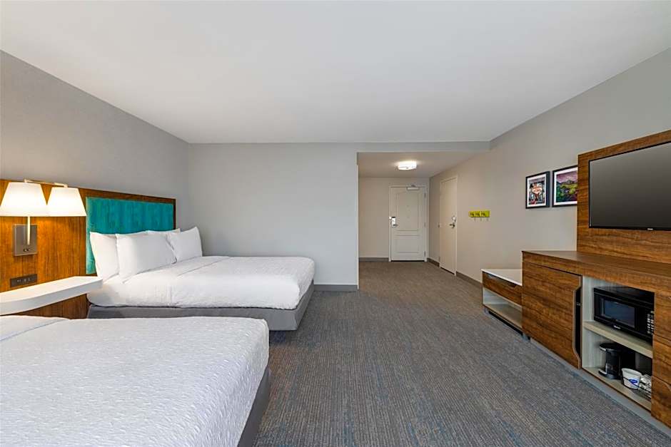 The Hampton Inn Las Vegas/North Speedway offers two types of rooms: King Rooms and Queen Rooms with Two Queen Beds. All rooms are non-smoking. The King Rooms accommodate 2 adults and 1 child, while the Queen Rooms with Two Queen Beds accommodate 4 adults and 3 children. The King Rooms have 1 King size bed, and the Queen Rooms have 2 Queen size beds.
