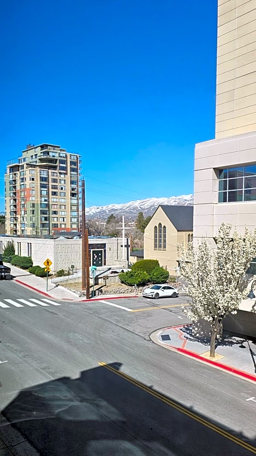 The staff was incredibly friendly and helpful. The security guards were great. I felt very safe. This place made me feel like home. The room was very large, clean and quiet. I loved hearing the church bells every hour across the street and had a nice view of the mountains and the hot air balloon race. One block away is a beautiful park on the truckee river. Lots of places to walk to easily. Super clean and safe neighborhood