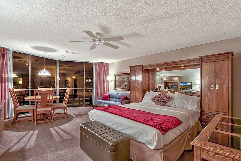 Plaza Resort Club Reno offers Deluxe King Rooms and Deluxe Queen Rooms with Two Queen Beds. These rooms do not allow smoking and are suitable for both families and double occupancy. The rooms are spacious, measuring 484 square feet, with various bed options including King and Queen size beds along with a sofa bed.