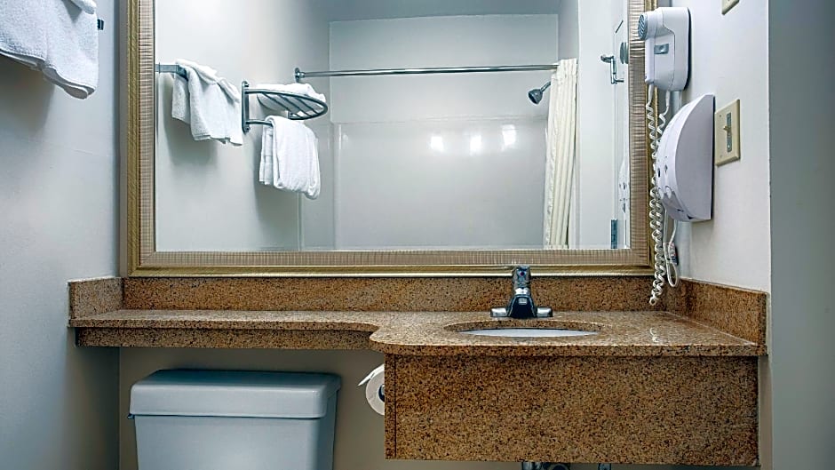 Bathroom very clean with new fixtures and good shower; convenient parking and access; bed was very comfortable; in-room climate control very functional; bacon and eggs at breakfast were delicious.