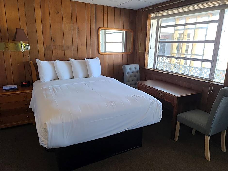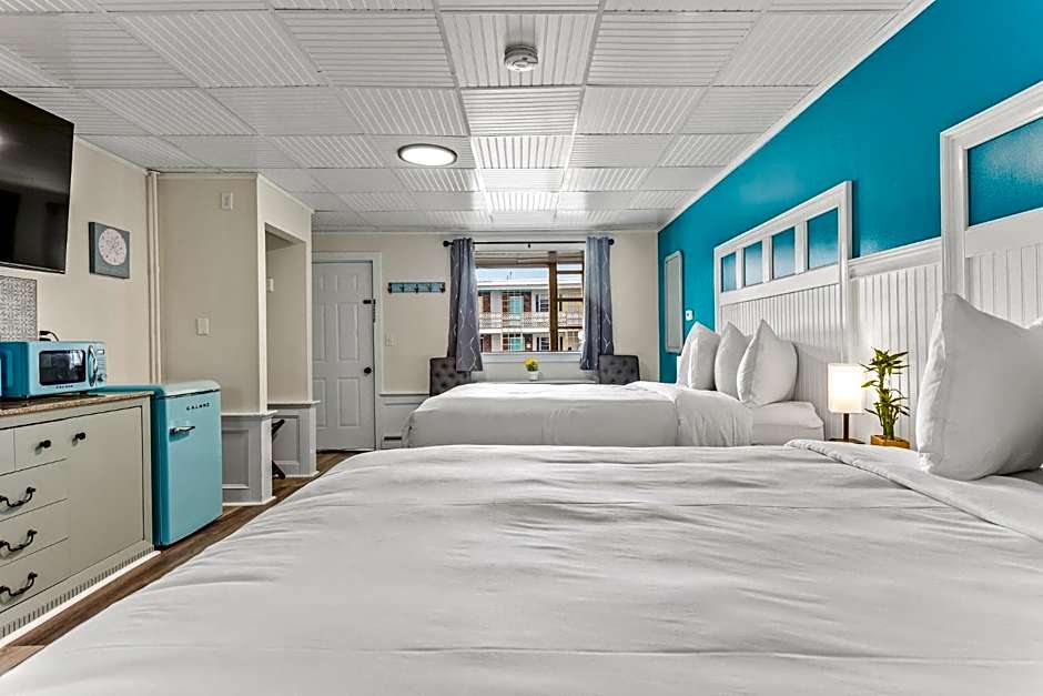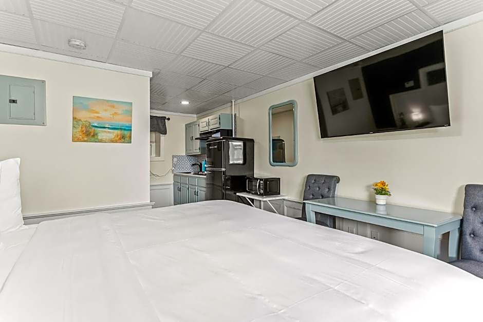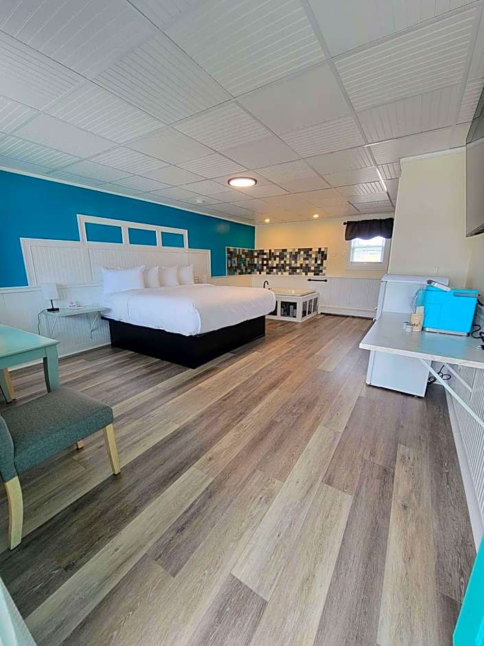 so cute updated and clean rooms! only downside was shower could be updated and a little bigger, our tub didn't drain. Also could use a rack for hanging some clothes. there isnt a closet, that's ok, but at least a rack with some coat hangers would be nice! The owner, presume the front desk man is the owner, is so friendly and helpful! we've stayed a couple years in a row and love it! one block from the beach an connivence store right at the end of the parking lot! walk to restaurants and bars, chairs for outside your room seating, love it!