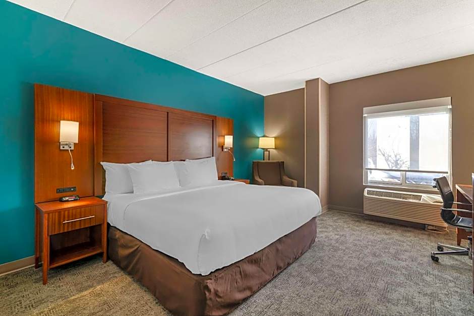 The Comfort Inn Airport Manchester offers a variety of room options. They have Queen Rooms with Two Queen Beds, King Rooms, Double Rooms with Two Double Beds, and Queen Rooms. All rooms are non-smoking and have different occupancy limits depending on the room type. The bed sizes range from Queen to King, and the room sizes are either 291 or 301 square feet.
