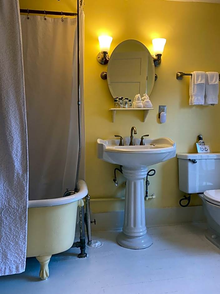 This two-room suite has an private bathroom with a claw foot tub/shower.