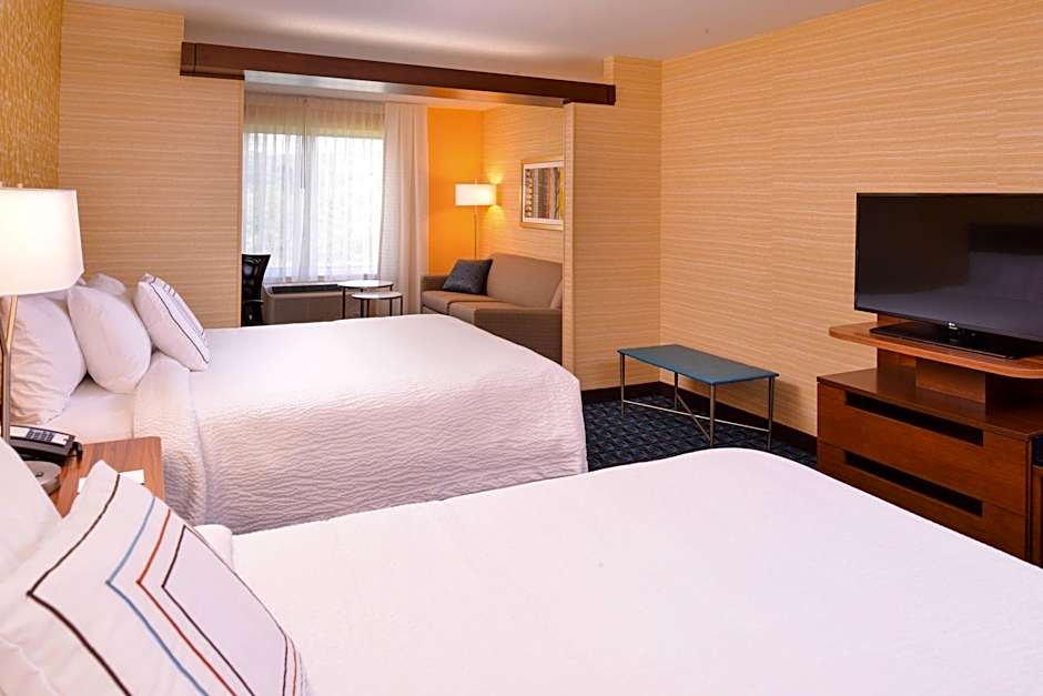 The Fairfield Inn & Suites offers a variety of room types including King Rooms, King Suites, and Queen Rooms with Two Queen Beds. All rooms are non-smoking and range in size from 312 sqft to 377 sqft. The King Room and the King Suite both accommodate 2 adults and 1 child, while the Queen Room with Two Queen Beds can accommodate 4 adults and 3 children. The King Room and King Suite have 1 king-size bed, while the Queen Room with Two Queen Beds has 2 queen-size beds.