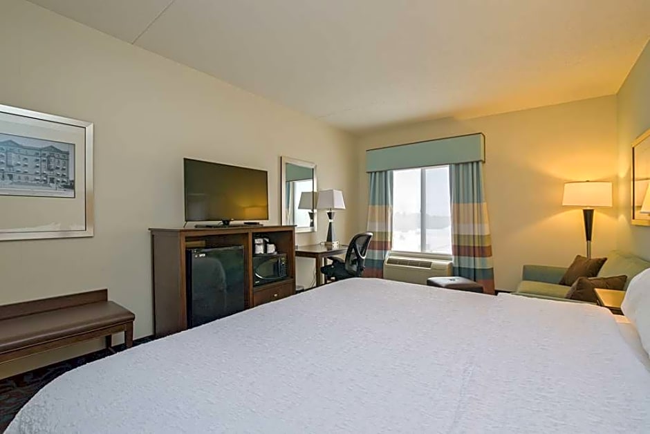 The Hampton Inn Portsmouth Central offers a Queen Room with Two Queen Beds - Non-Smoking and a Queen Room with Two Queen Beds - Hearing Accessible, both of which can accommodate 4 adults and 3 children. These rooms have a room size of 291 sqft and 248 sqft, respectively. Additionally, the hotel provides a King Room - Non-Smoking that can accommodate 3 adults and 2 children, with a room size of 248 sqft and a single King size bed. Smoking is not allowed in any of these rooms.