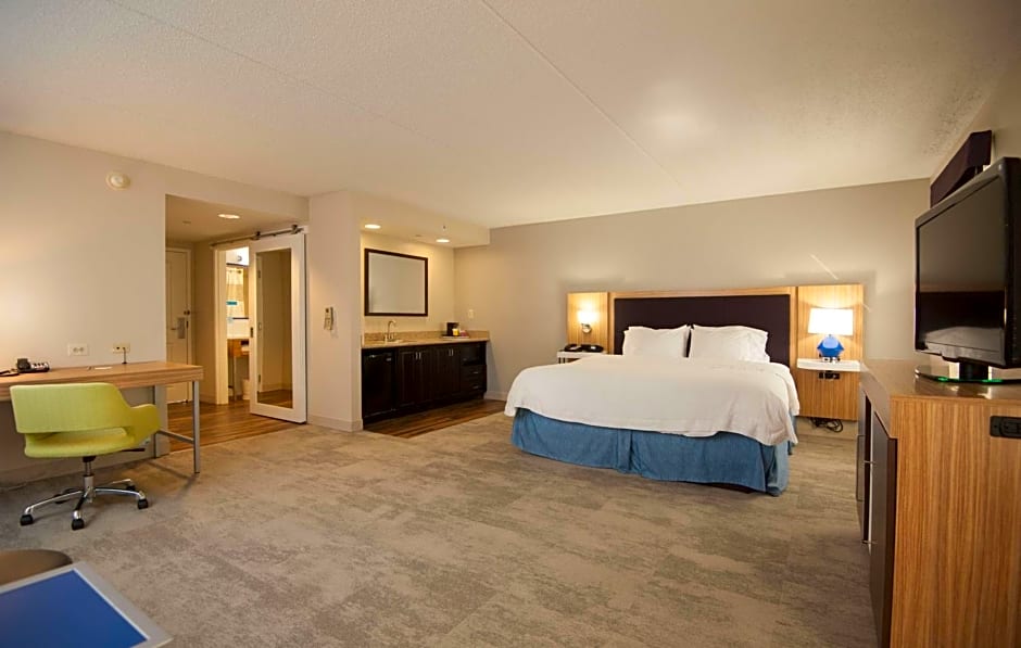 Any corresponding photo may not reflect the specific accessible room type or room feature. This mobility accessible, one-room, nonsmoking studio suite features one king sized bed , and an Accessible bath tub. The suite features include a sofabed, microwave, refrigerator, wet bar, comfortable soft seating, a HDTV, and easy to operate alarm clock/radio. The free high speed internet access will help you stay connected while on the road. If you prefer not to work at the desk, you can use the convenient lapdesk instead. You'll also enjoy the convenience of having a coffee maker with tea service and iron/ironing board in your room.