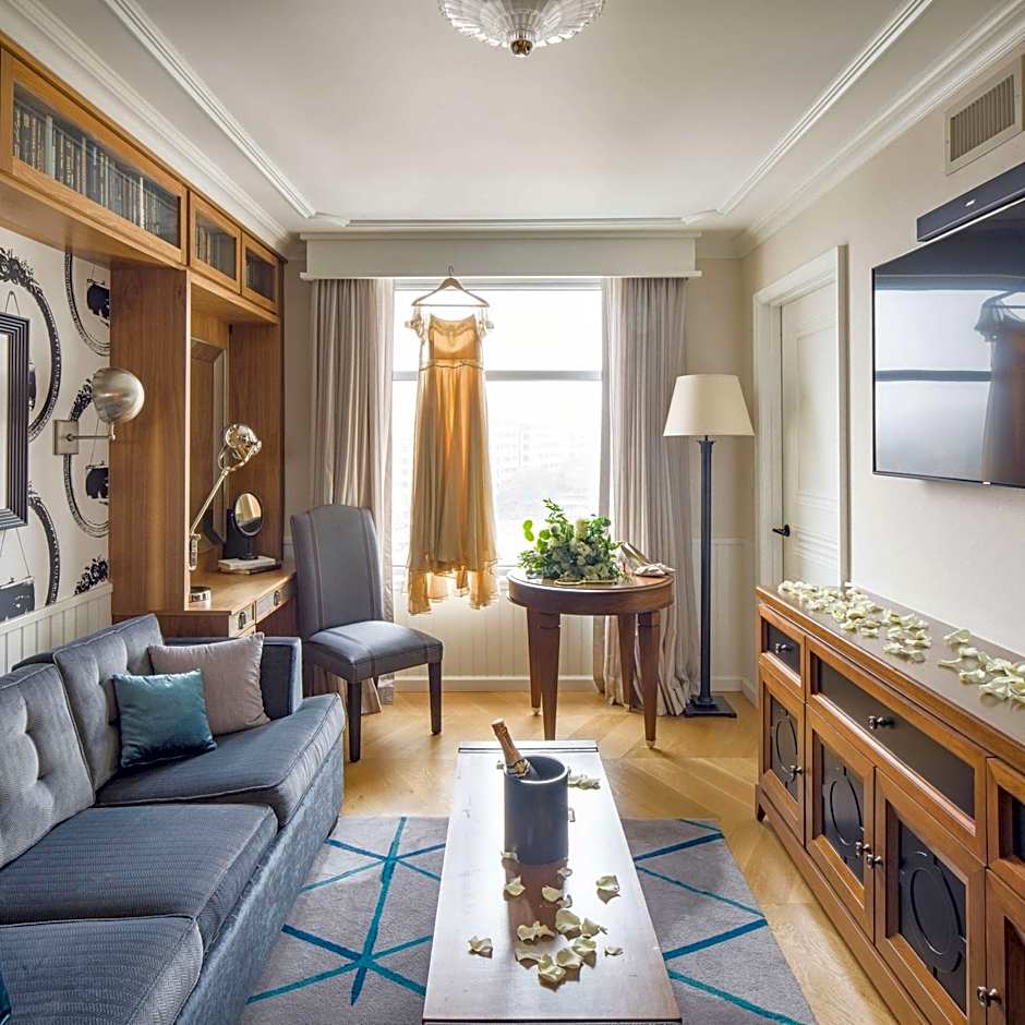 Room was a suite with separate living area, small kitchen and separate bedroom. Very nicely appointed and comfortable. They give you two waters which was nice and we were able to have a delayed check out of an hour which helped us .