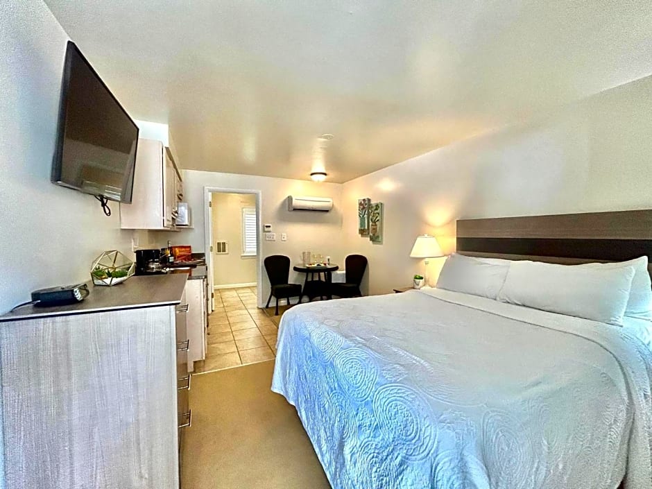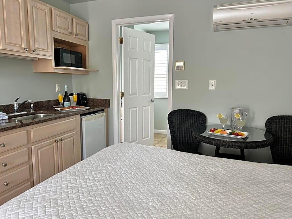 Beautifully renovated design, all new. Super comfortable bed. Loved having the kitchenette and Keurig. Good location for all of Cape May activities. So happy to have the included beach access at La Mer (towels, lounge chair, umbrella) with options to order food!