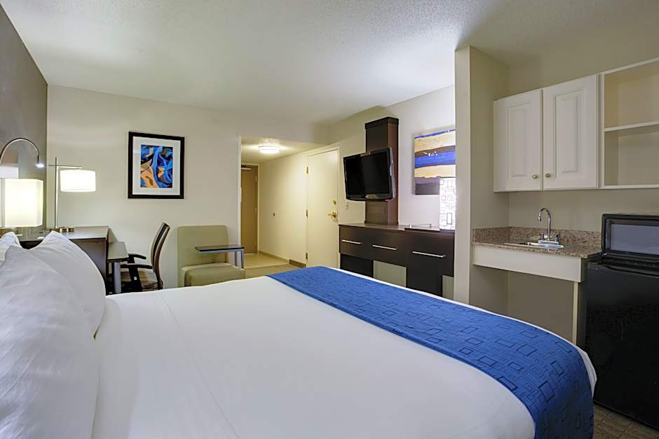 After a day of exploring, unwind in one of the inviting suites at Holiday Inn Express Hotel & Suites Meadowlands Area! With various options available, from the spacious 1 King Bed Suite with an additional living area and cozy sofa bed to the luxurious Suite with a Whirlpool, you’re sure to find the perfect spot to recharge. Whether you're traveling solo or with friends and family, there's room for all! Imagine kicking back after a long day of sightseeing, indulging in your favorite shows on the flat-screen TV, or enjoying a refreshing drink in your suite's living area — the ideal way to end a fun-filled day.
