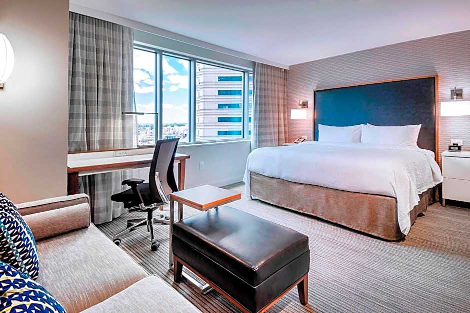 The hotel offers a One-Bedroom King Suite which is a suite with 506 sqft, accommodating 4 adults and 3 children, with a King size bed. There are also King Studios available, with or without a sofa bed, accommodating 2 adults and 1 child or 4 adults and 3 children, and a King Studio with a sofa bed and roll-in shower for mobility accessibility. Smoking is not allowed in any of the rooms.