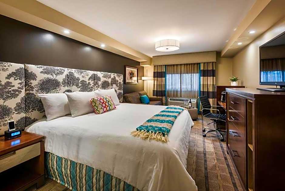 On-site dining options keep mornings cheerful with the Complimentary Buffet Breakfast, a family-friendly pick, while Trellis Bar offers a Modern vibe for relaxing evenings. A kid-friendly buffet adds to the family-friendly atmosphere. For easy travel, a free airport shuttle and free shuttle service are available, along with free private parking. Rooms feature kitchenware and a kitchenette, providing convenient self-catering options during stays.