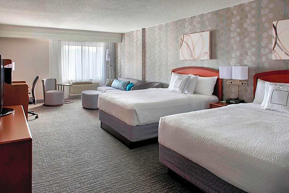 The Courtyard by Marriott Lebanon offers a variety of room types, including King Rooms with a double occupancy, featuring a king-size bed and a sofa bed. These rooms are non-smoking and have a room size of 269 sqft or 280 sqft. The hotel also offers Queen Rooms with two queen beds or a king-size bed and a sofa bed, accommodating up to four adults and three children. These rooms are also non-smoking and have a room size of 301 sqft.