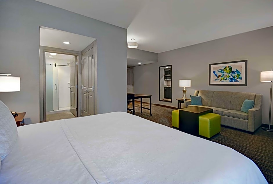 Indulge in the spacious King Suite - Hearing Accessible with Bathtub, a 398 sqft haven perfect for 4 adults and 3 children. Enjoy the convenience of a fully equipped kitchen, private bathroom, and luxurious amenities, providing everything you need for a comfortable stay.