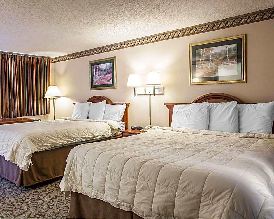 The Econo Lodge Newton offers various types of rooms including Double Rooms with Two Double Beds (non-smoking and smoking options), a King Room (accessible/non-smoking), a Queen Room with Two Queen Beds (non-smoking), and a Queen Suite with Two Queen Beds (non-smoking). The rooms can accommodate between 2 adults and 1 child to 4 adults and 3 children. Bed sizes range from double beds to queen beds, with the King Room offering a king-size bed. Smoking is not allowed in any of the rooms.
