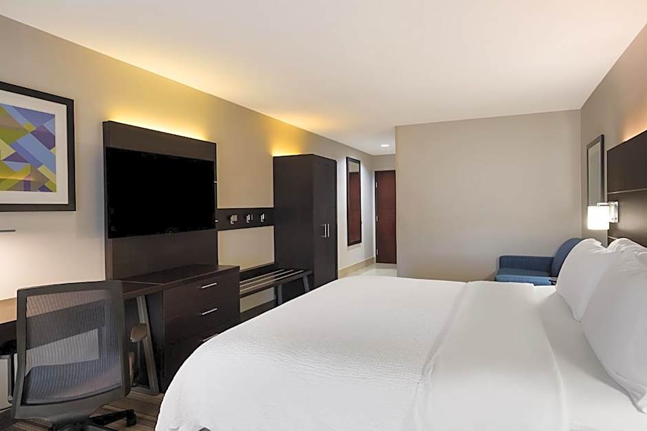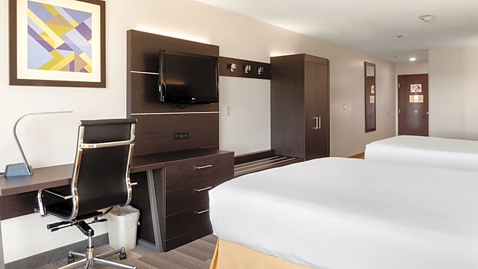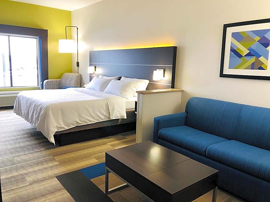 The available room types at the Holiday Inn Express Hotel & Suites Newton Sparta include Standard Rooms with either a king or queen bed, Queen Suites with two queen beds, and King Suites with a king bed and a sofa bed. Smoking is not allowed in any of the rooms. The Standard Rooms accommodate 2 adults and 1 child, while the Suites accommodate 4 adults and 3 children. The room sizes range from 398 to 452 square feet.