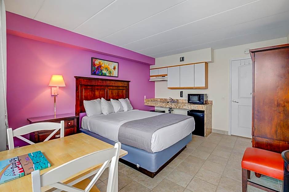The room was unexpectedly large and easy to stretch out and relax. The a/c was very cold and the beds were very comfy. The tv's were a bit larger than expected which was very nice. The mini kitchen had everything from cabinets with dishes, utensils, mini fridge, microwave, toaster, coffee pot and an electric stove. I have to say I was blown away never seeing so many amenities in a kitchen before. This location was right next to the boardwalk and right in the middle of all the attractions you can have a fun day with. And the beach was just on the other side of the boardwalk plus plus....