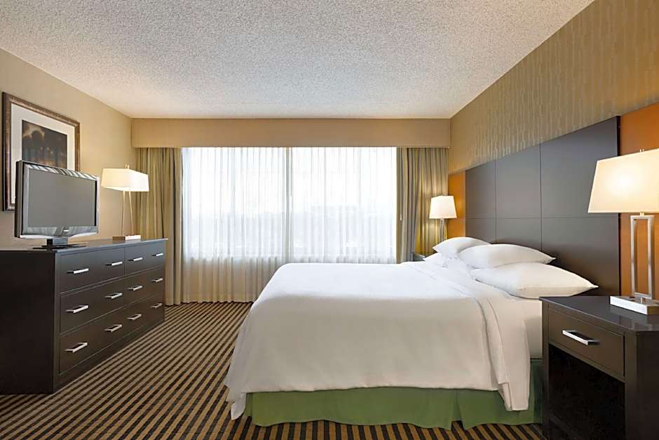 The well-appointed rooms at Embassy Suites by Hilton Piscataway Somerset are designed for ultimate comfort. Choose from a range of spacious suites, including the Premium King Suite, the One-Bedroom King Suite, or the One-Bedroom Double Suite with Two Double Beds. Each suite features modern amenities such as air conditioning, free toiletries, a refrigerator, and a flat-screen TV. With accommodations for up to four adults and three children, these suites are perfect for families or groups traveling together.