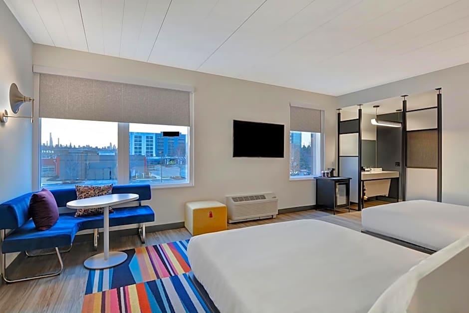 Aloft Secaucus Meadowlands offers guest rooms with either one King size bed or two Queen size beds. These rooms are non-smoking and can accommodate either 2 adults and 1 child or 4 adults and 3 children respectively. The King room has a room size of 280 sqft while the Queen room is slightly larger at 301 sqft.