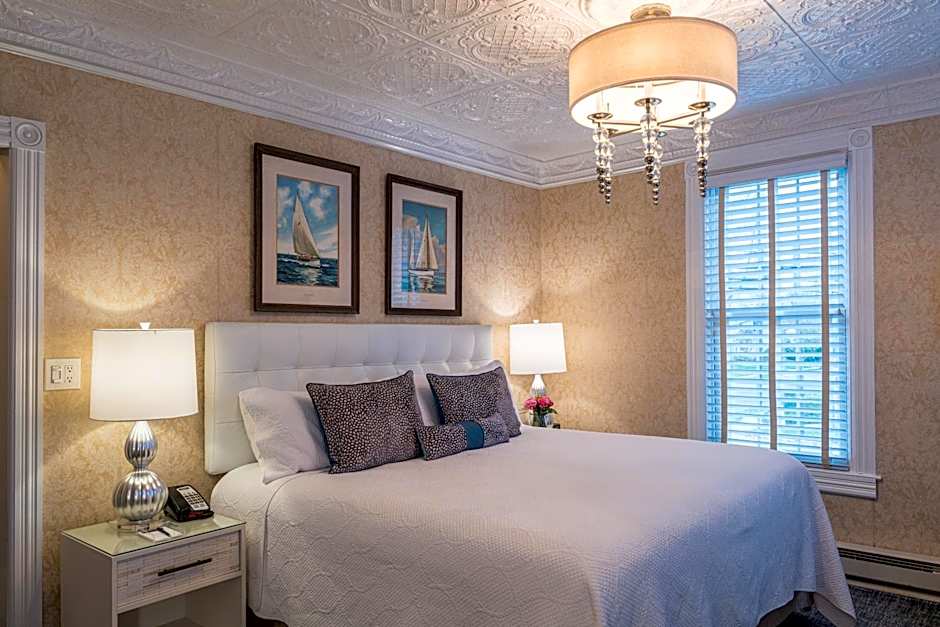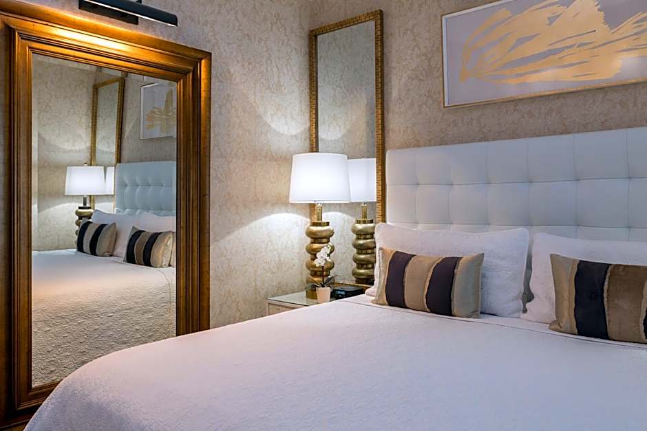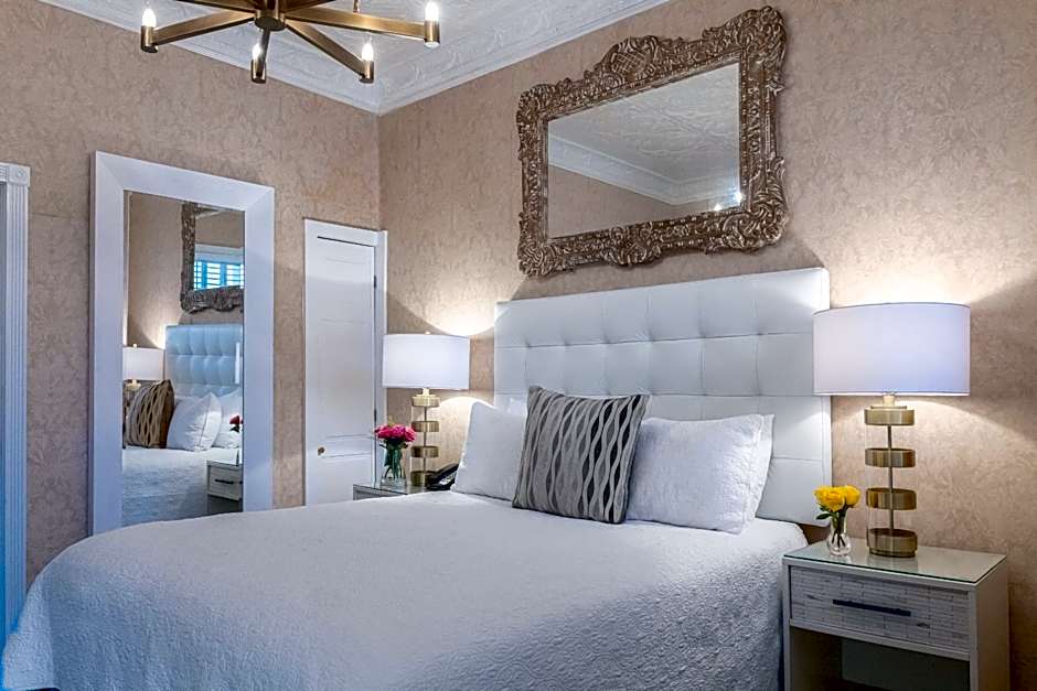 Superior Kings are located on all levels including ground, second and third floor of The Chateau. Most overlook Divine and Potter Parks and The Courtyard. Room-sized approximately 25% larger than the Cozy Queen. Each individually appointed Superior King is complimented by convenient amenities such as high-speed internet access, flat screen-HD TV with premium cable and 100+ channels, iHome Bluetooth and smart charger, air conditioning, telephone, iron and ironing boards, in-room safes and a marble bathroom with a swivel makeup mirror, and hair dryer.