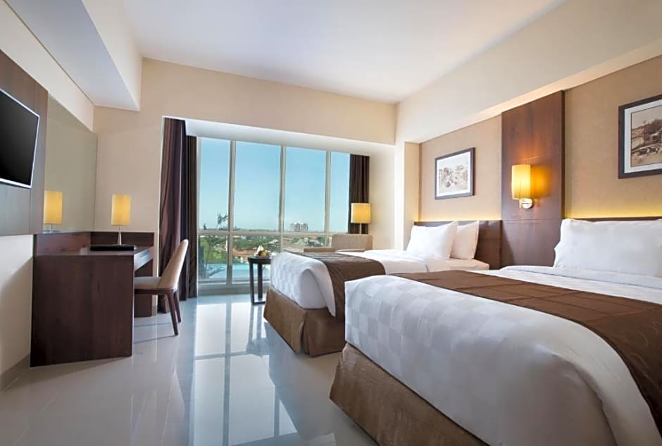 Deluxe Twin Room is 312 square feet and includes either 2 double beds 131-150 width or 2 single beds 80-130 width plus safe.