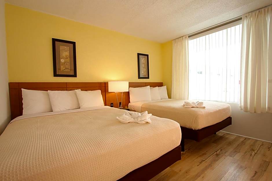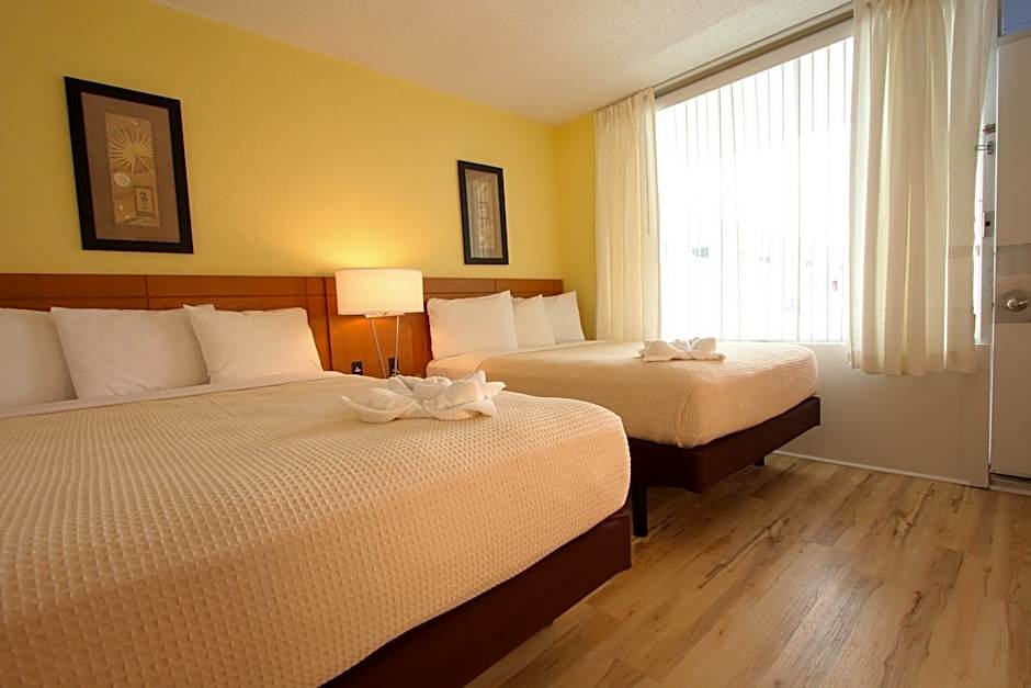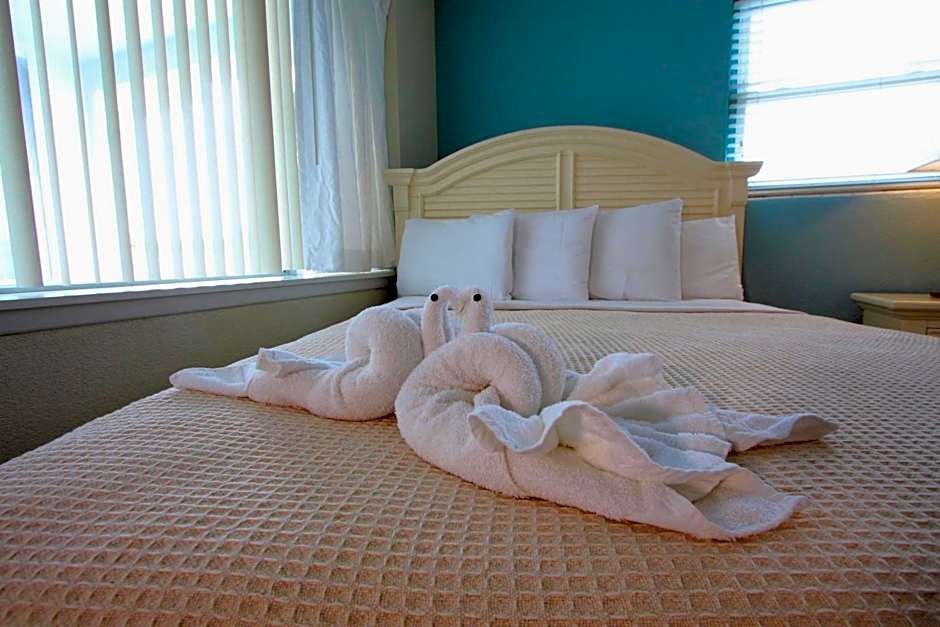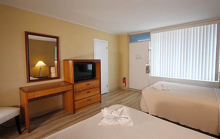 We stayed at the Crusader over Memorial Day weekend and were pleasantly surprised how close to the beach we were and that it was only a 15-minute walk to the Boardwalk. It has a nice clean outdoor pool that is well-maintained and provides clean towels and lounge chairs. Our room for a family of five was just right with two queen beds and a pullout couch/bed in the living room. Our room also had many of the towels folded into adorable flowers and a great view of the beach/shore. Parking is available right around the building as well as on the street, and the staff was friendly and accommodating. One night, there was a very heavy rain storm. Since our back door was facing the beach, some water crept in through the bottom of the door. We were able to stop the leak with towels and called housekeeping who provided a door guard that soaks up water in case it happened again. For the price we paid, we would definitely stay here again and recommend it to others as well.