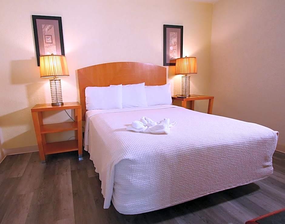 Kitchenette. Big refrigerator, The location is pretty good, Nice size room with two couches, two TVs, The place is clean, nice pool and upper deck , had a lot of covered parking and staff was very,very nice and helpful.